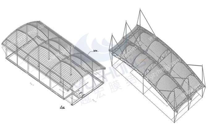 越宏膜結構廠家的體育館膜結構主席臺是由鋼結構和膜材組成,分別有張拉式膜結構、索膜結構、骨架式膜結構、空間結構式等供選擇,根據不同場景進行設計出個性化膜結構。